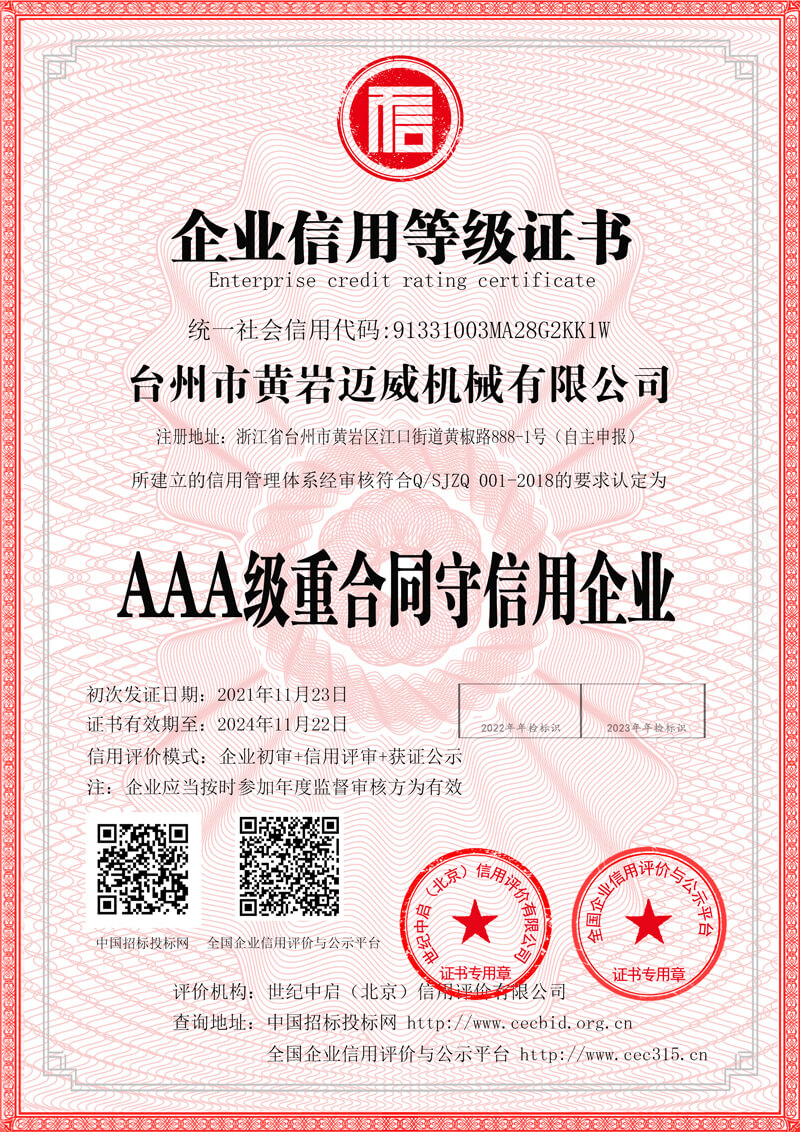 臺州市黃巖邁威機(jī)械有限公司座落于東海之濱,素有“模具王國,吹瓶機(jī)制造基地”美稱的浙江黃巖。